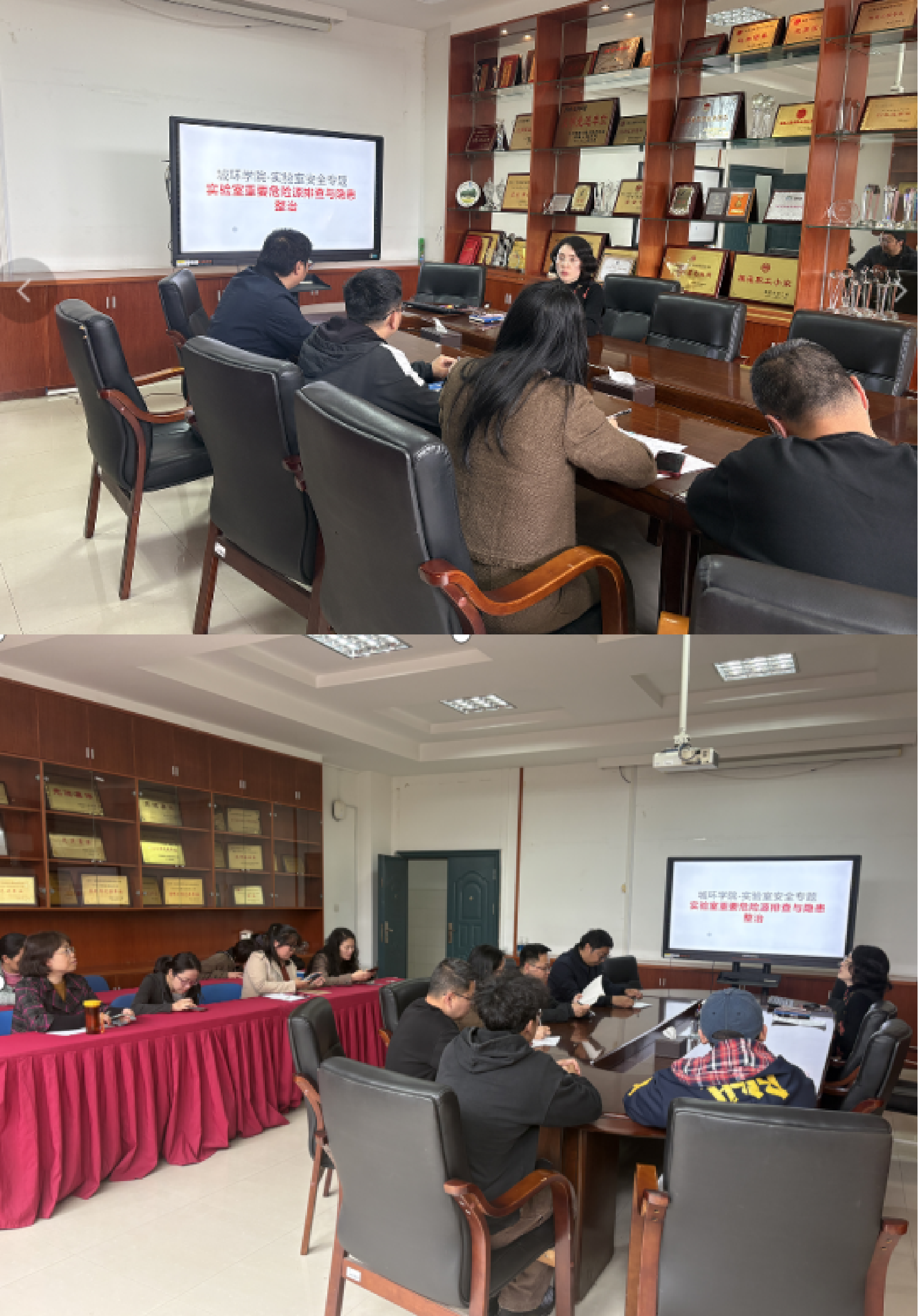 2026 年 03 月 27 日下午,城环学院在祖忆楼二楼小会议室召开 “实验室重要危险源排查与隐患整治” 专题安全会议。分管实验室工作的副院长丁翠翠主持,各教学、科研实验室安全负责人参会。